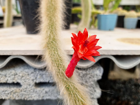 Echinopsis Chamaecereus cactus flower in the cactus farm.