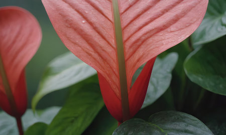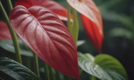 AI Generated. Pink and red anthurium flowers showing their beauty with water droplets