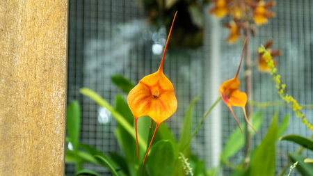 San Francisco, USA - August 2019: Colorful Dracula orchid in Conservatory of Flowers in Golden Gate Park