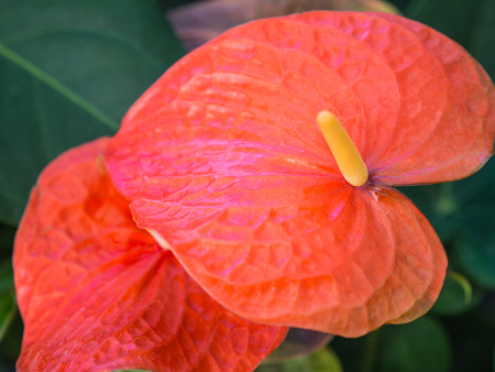Close up of red and white Anthurium flower, Thailand.