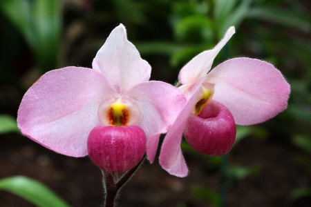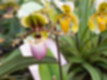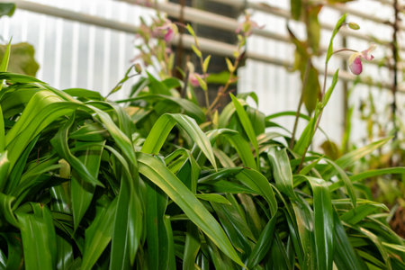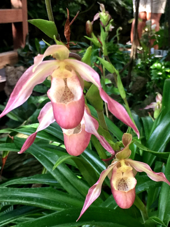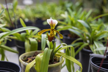 Gorgeous orchid flowers in green house (Paphiopedilum sp)