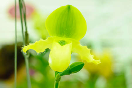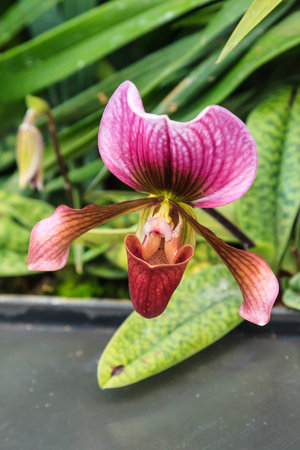 Beautiful Paphiopedilum orchid flower in the garden