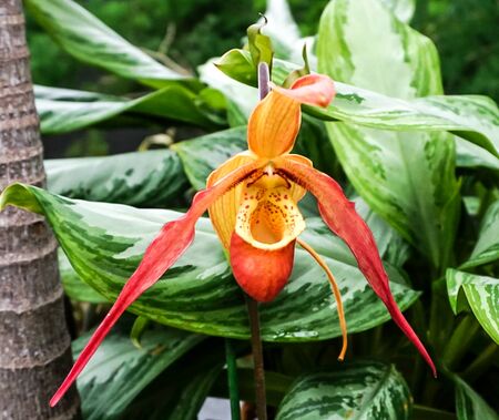 Beautiful Paphiopedilum orchid in the garden.