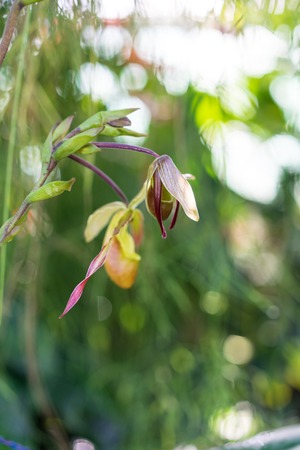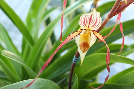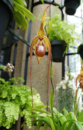 Wild beautiful orchid in the garden Orchid flower - Paphiopedilum henryanum