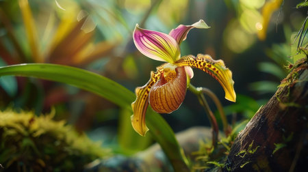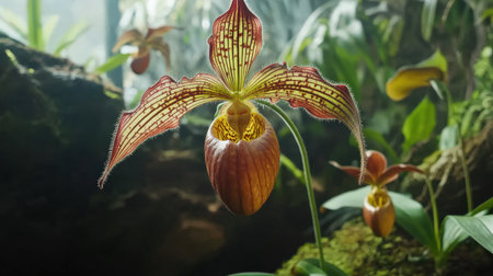Paphiopedilum orchid in the rainforest.