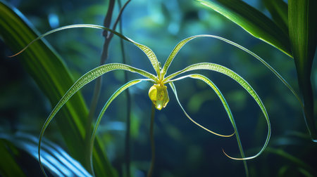 A blooming Brassia orchid, commonly known as the Spider Orchid, with its long, spidery petals