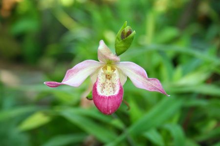lady's slipper orchid flower close-up, Cypripedium