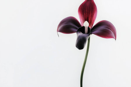 Elegant purple orchid flower with a striking contrast against a minimalist white background, symbolizing beauty and grace in floral photography