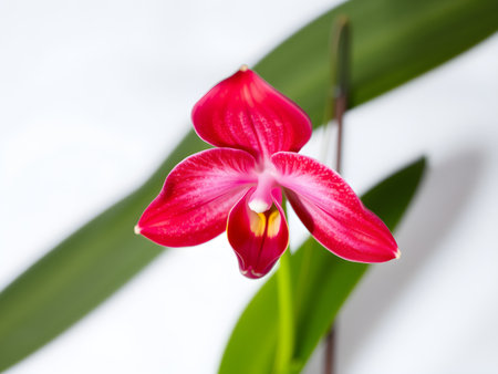 Red orchid on a white background. Close-up. Selective focus.