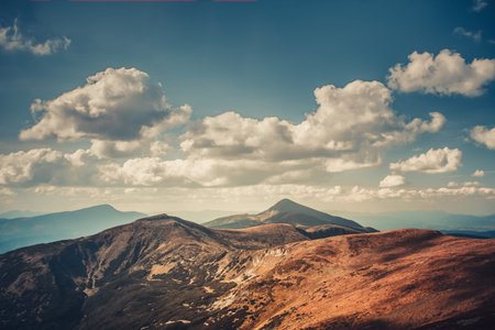 Mountain landscape. Beautiful cloudy moutainscape. Mountain scene. Serene scenery in wild nature. Misty mountain landscape. Mist in the forest. Misty mountains view in the early morning.