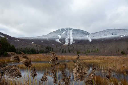 Nice view of Mount Orford in Quebec, Canada, after the first frost in the mountains