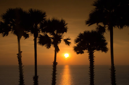Dramatic Sunset with silhuette palm ttee in Phuket
