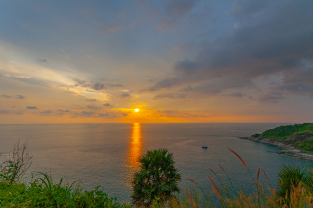 Breathtaking sunset over the sea at Phromthep Cape, Phuket province ,Thailand