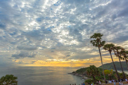 Promthep Cape is a mountain of rock that extends into the sea view point sunset at Phuket, Thailand