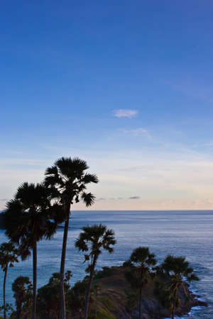 Tropical andaman seabeach palm tree at sunset viewpoint, Phuket Thailand