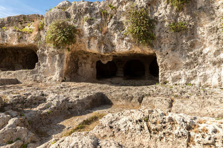 Sceneries of The Street of Tombs (Via dei Sepolcri) in The Neapolis Archaeological Park in Syracuse, Sicily, Italy.