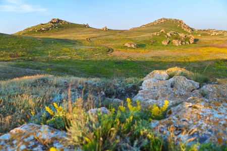 Desert landscape near the national park Gobustan in Azerbaijan. Documented site of ancient people in the list of UNESCO World Heritage sites.