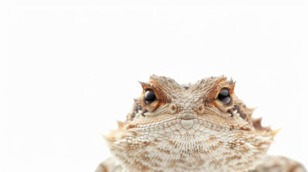 Desert Horned Lizard displays beautiful spiky scales against a pristine white backdrop highlighting its unique texture and coloration with perfect lighting conditions.