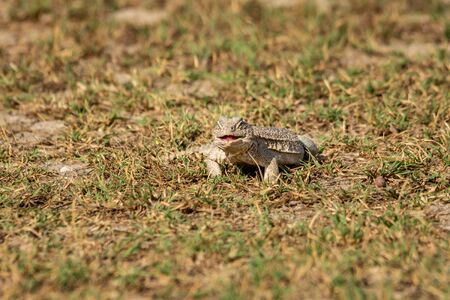 lizard toadhead agama in a demonstrative pose among the desert sand