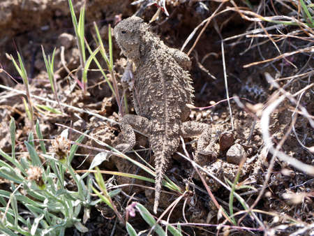 Horned lizard also known as horny toad or frog in natural habitat
