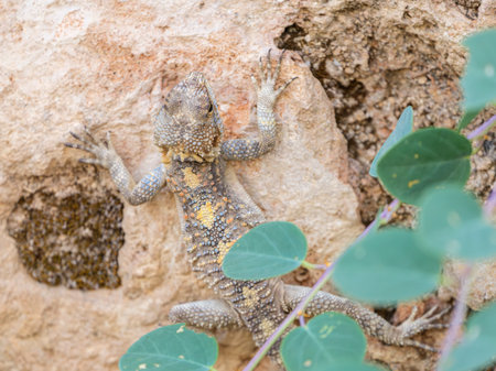 Caucasian agama on a rock in the cave city of Uplistsikhe, Georgia