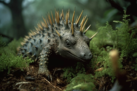 Masked spiny lizard (Acanthosaura crucigera) closeup in tropical fprest