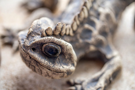 Wellington, New Zealand - August 21, 2022: Sculpture of the head of a Tuatara