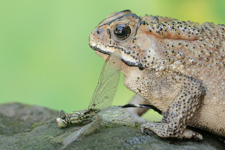 Common toad with dragonfly