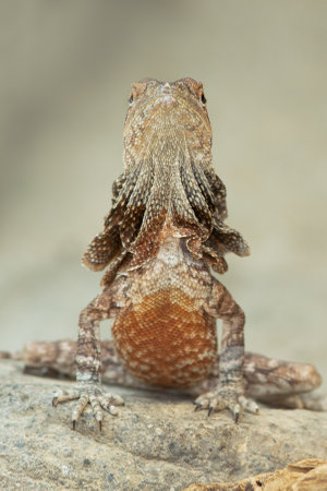 Bearded dragon, Pogona vitticeps, sitting on a rock
