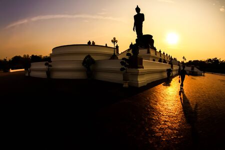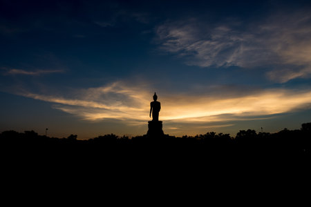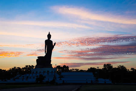 Buddha silhouette on sunset sky, Khonkaen, Thailand