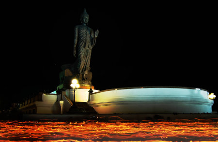 Makhabucha, Buddhism Candle Ceremony, Walk with lighted candles in hand around Buddha statue