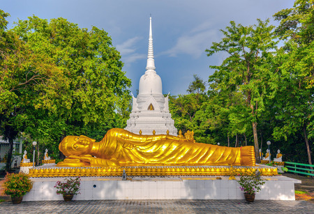 Reclining Buddha statue in Wat Khao Chedi on Koh Samui in Thailand.