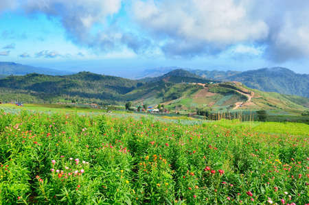 Panoramic View Of Agricultural Field Against Sky in Chiang Mai Thailand.