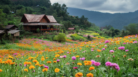 Skywalk Mon Jam flower garden in Mae Rim, Chiang Mai, Thailand
