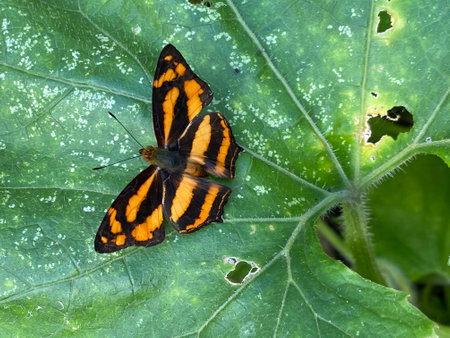 A beautiful butterfly perches on a seedless lemon blossom, nesting honey. Lemon flowers are very fragrant.