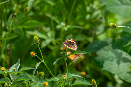 Butterfly on a flower in the meadow, Thailand.