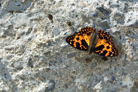 Butterfly on a rock in the forest. Close up.