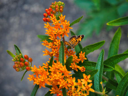 Border Patch Butterfly sipping nectar from an orange flower.