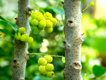 Star gooseberry fruit. Phyllanthus acidus,bunch gooseberry in garden background