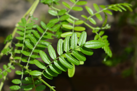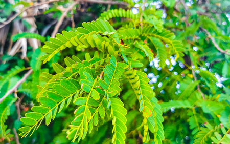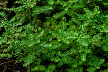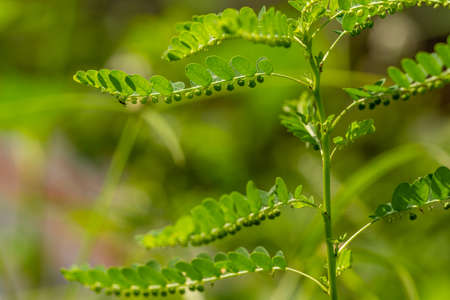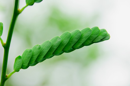Tamarind (Tamarindus indica) green leaves, selected focus.
