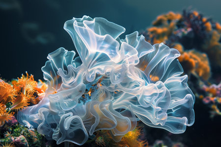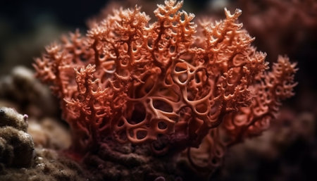Close up of underwater coral reef reveals vibrant sea life patterns generated by artificial intelligence
