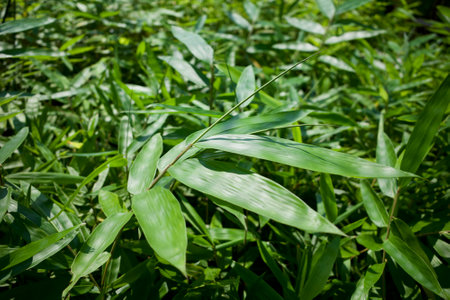 Detail of Green Bamboo forest with sun light