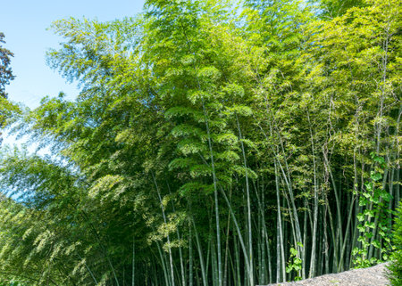 A green bamboo forest in spring sunny day