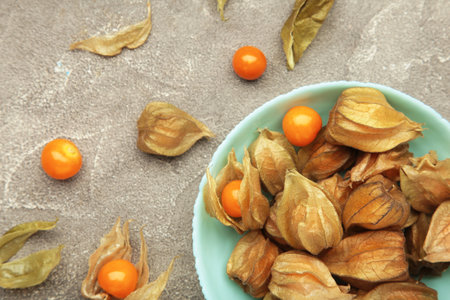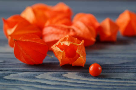 Physalis alkekengi berries on the table. Fruit rich in vitamin C