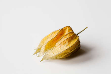 Physalis flower on a yellow autumn minimal background. Autumn and fall beauty