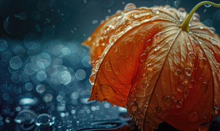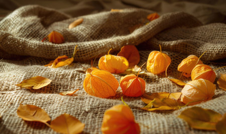 Autumn background with Delicate bright orange Physalis, also known as Chinese lantern and gooseberry