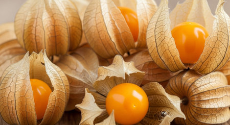 Cape gooseberry, Goldenberry or Physalis peruviana. Orange fruit background texture