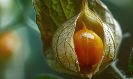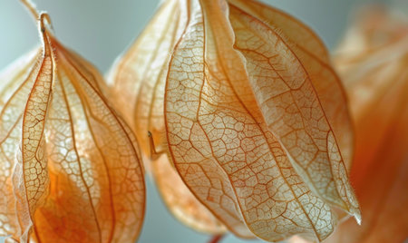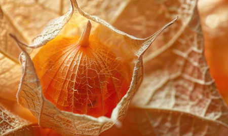 Macro view of physalis with a focus on the delicate husk texture