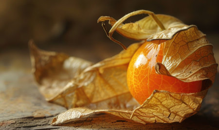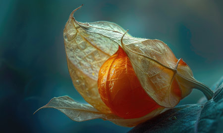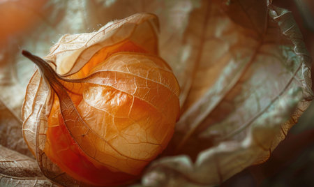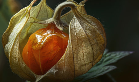 Detailed macro of physalis with the husk torn, revealing the fruit inside, soft studio lighting, shallow depth of field, --ar 5:3 Job ID: 29a2a8a6-19d2-4673-bea4-e3898642e2e7