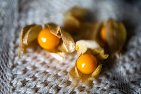 Macro shot of physalis fruit with the husk partially removed
